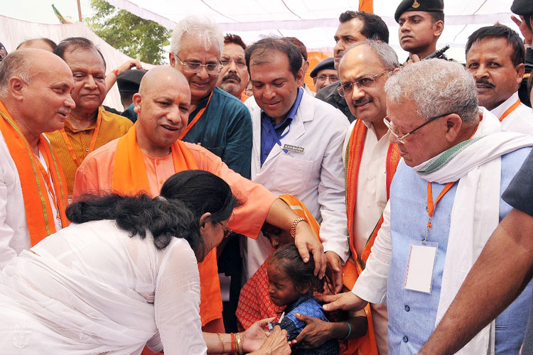 श्री राम जन्मभूमि मंदिर के निर्माण हेतु भूमिपूजन के बहुप्रतीक्षित अवसर पर आज सहज ही दादागुरू ब्रह्मलीन गोरक्षपीठाधीश्वर महंत श्री दिग्विजयनाथ जी महाराज और पूज्य गुरूदेव ब्रह्मलीन गोरक्षपीठाधीश्वर महंत श्री अवेद्यनाथ जी महाराज का पुण्य स्मरण हो रहा है। मैं अत्यंत भावुक हूँ कि हुतात्माद्वय भौतिक शरीर से इस अलौकिक सुख देने वाले अवसर के साक्षी नहीं बन पा रहे किंतु आत्मिक दृष्टि से आज उन्हें असीम संतोष और हर्षातिरेक की अनुभूति अवश्य हो रही होगी।