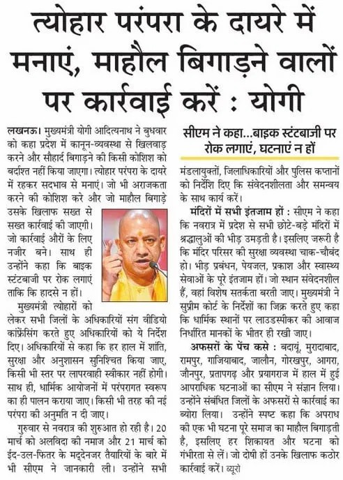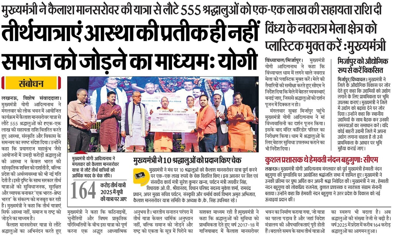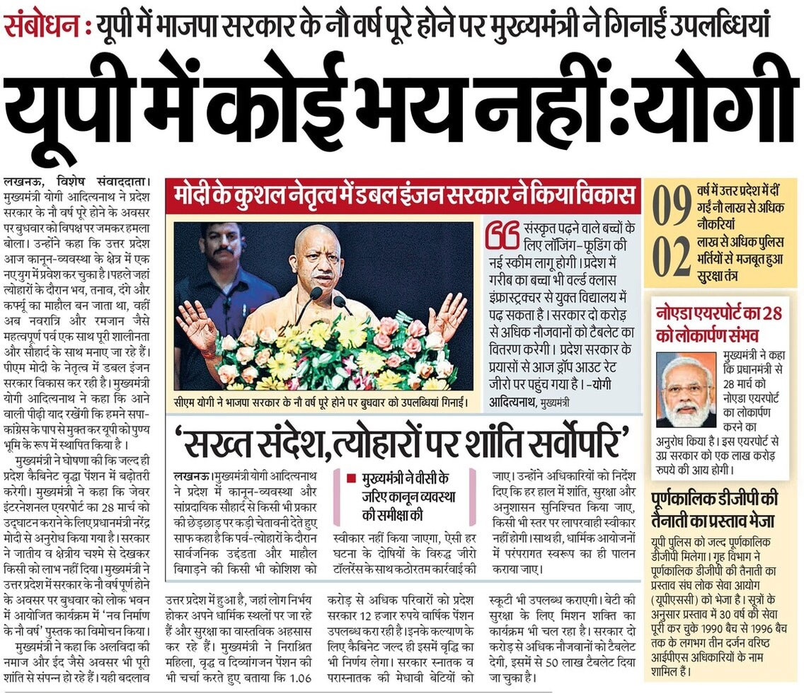 सनातन संस्कृति के प्राण प्रभु श्रीराम की जन्मस्थली हमारे शास्त्रों में मोक्षदायिनी कही गई है। आदरणीय प्रधानमंत्री श्री नरेन्द्र मोदी जी के मार्गदर्शन में उत्तर प्रदेश सरकार इस पावन नगरी को पुन: इसी गौरव से आभूषित करने हेतु संकल्पबद्ध है। श्रीअयोध्या जी वैश्विक मानचित्र पर महत्वपूर्ण केन्द्र के रूप में अंकित हो और इस धर्मधरा में रामराज्य की संकल्पना मूर्त भाव से अवतरित हो इस हेतु हम नियोजित नीति के साथ निरन्तर कार्य कर रहे हैं। वर्षों तक राजनीतिक उपेक्षा के भंवर जाल में उलझी रही अवधपुरी, आध्यात्मिक और आधुनिक संस्कृति का नया प्रमिमान बनकर उभरेगी। यहां रोजगार के नए अवसर सृजित हो रहे हैं। विगत तीन वर्षों में विश्व ने अयोध्या की भव्य दीपावली देखी है, अब यहां धर्म और विकास के समन्वय से हर्ष की सरिता और समृद्धि की बयार बहेगी।